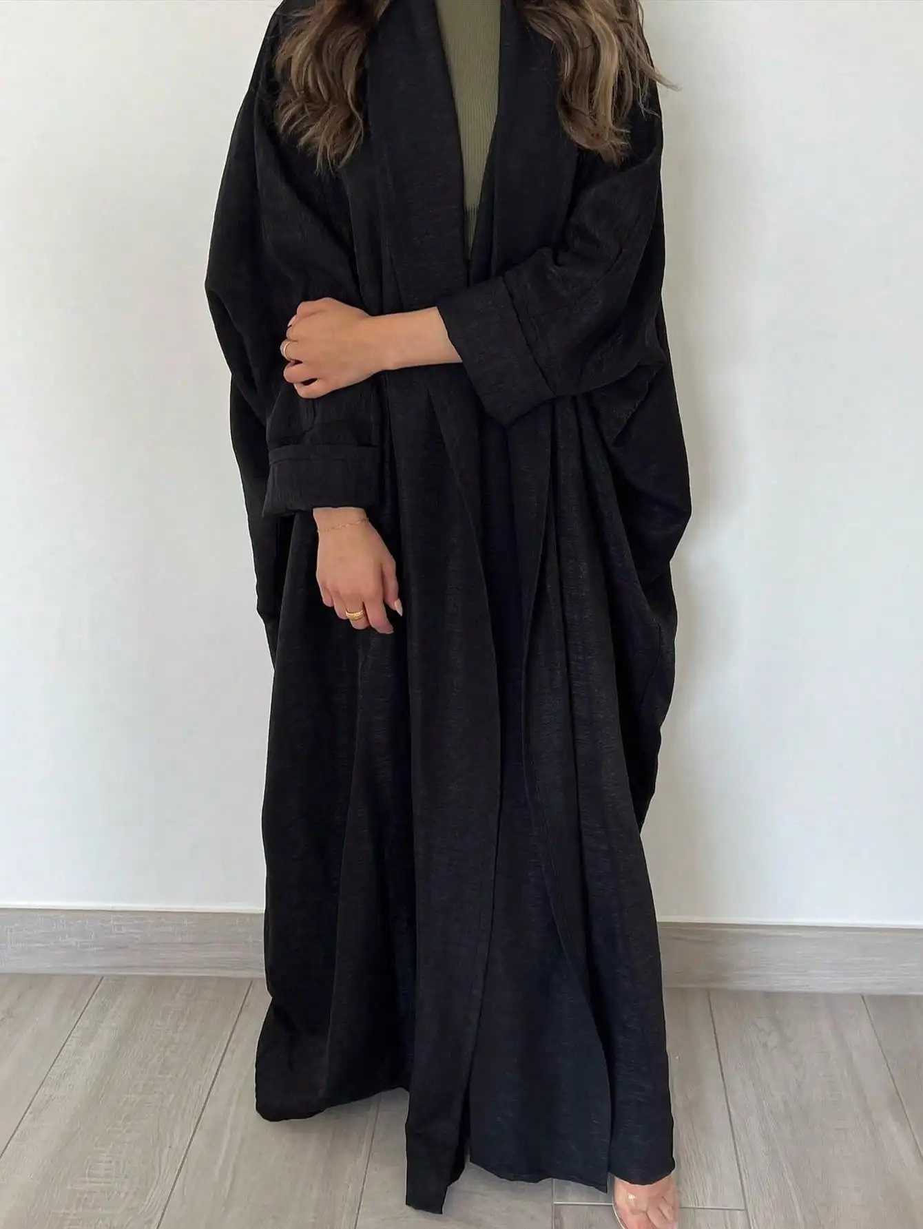 Full Sleeve Solid Loose Abaya Muslim Women Open Front Abayas Casual Kaftans Maxi Dresses Jilbabs Middle-East Ethnic Clothing