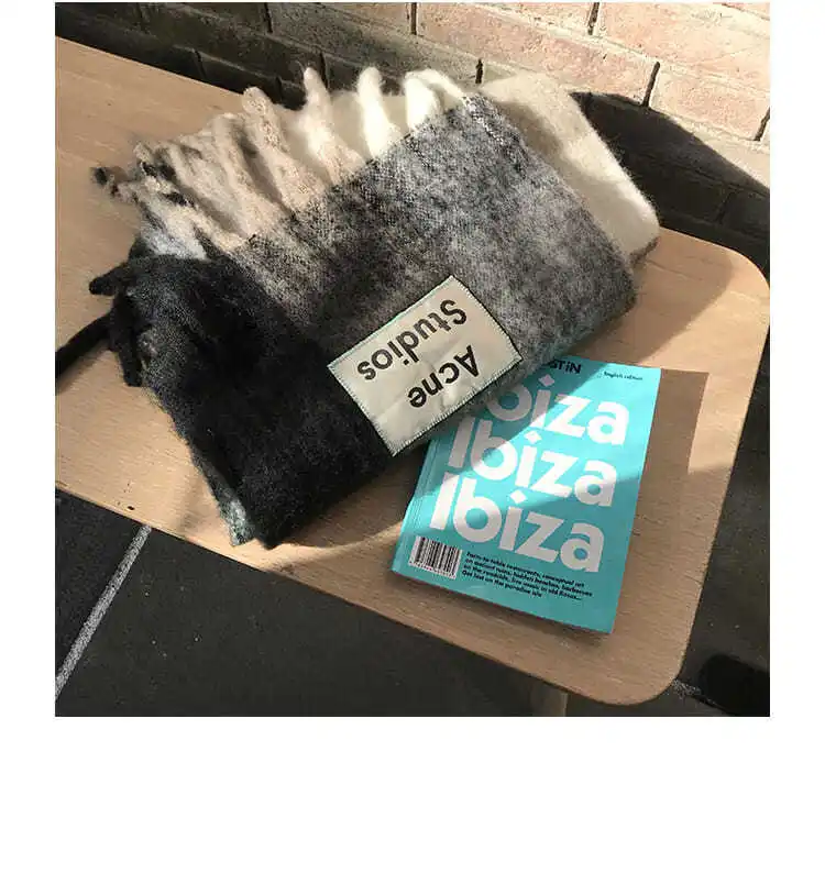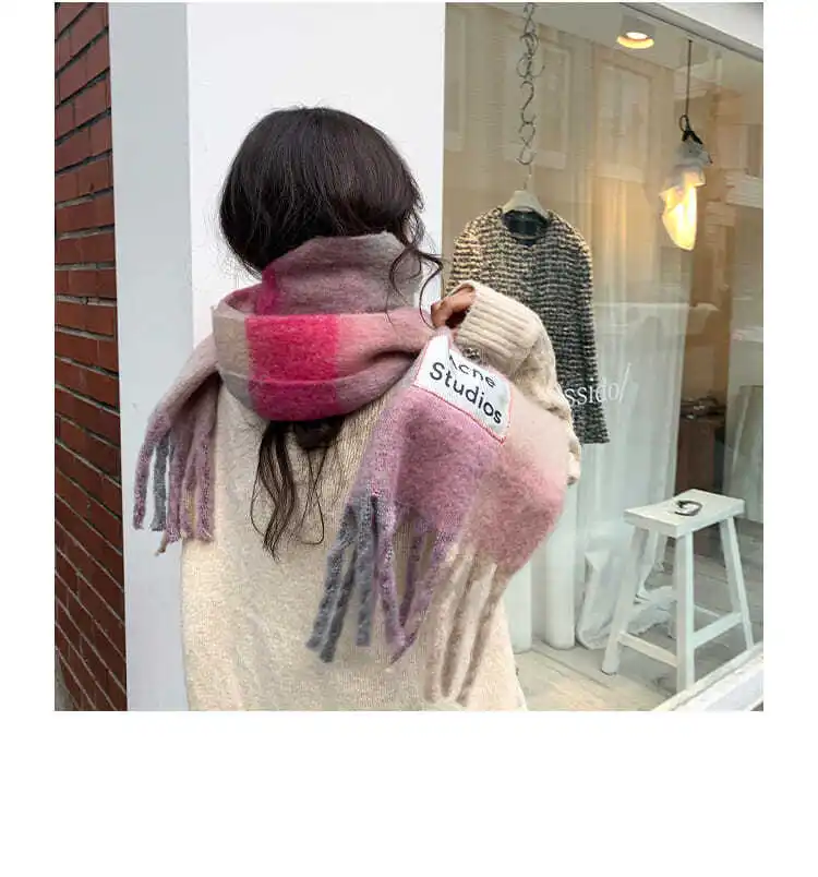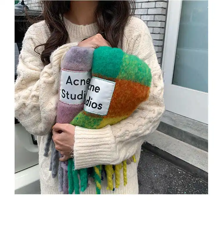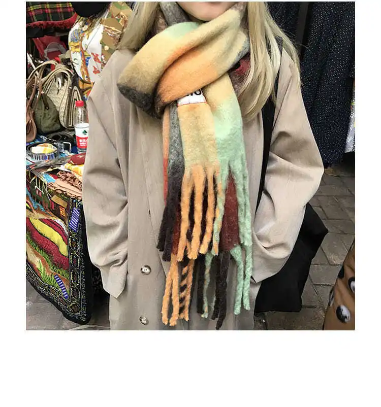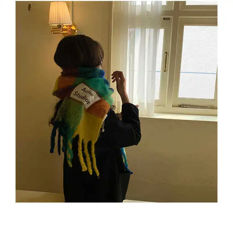 Korean version rainbow fringe square couple shawl with contrasting colors, warm scarf, women’s winter versatile design
